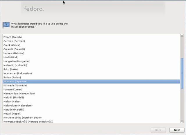 インストール中に使用する言語を選択します。「Jpanese(Japanese)」を選択して、「Nex」をクリックします。