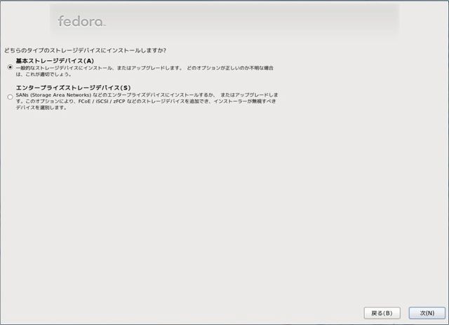 インストールするストレージデバイスを選択します。「基本ストレージデバイス(A)」を選択して「次(N)」をクリックします。