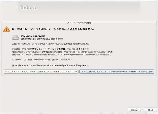ストレージデバイスの警告が表示されます。「はい、含まれていません。どのような・・・」をクリックします。