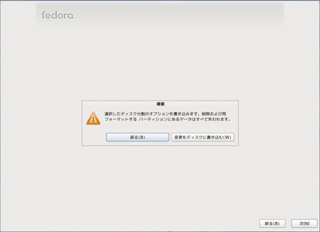 パーティションにあるデータが全て失われる旨の確認メッセージが表示されます。「変更をディスクに書き込む(W)」をクリックします。