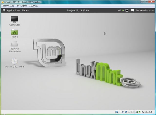 このLinux Live USB Creatorは、パソコンの起動時にUSBからブートさせてLinux Mint 12を起動させることもできますが、パソコンにLive USBを挿入した状態でLinux Mint 12を起動できる機能を持っています。これは仮想化ソフトであるVirtualBoxをLive USBにインストールして実現しています。