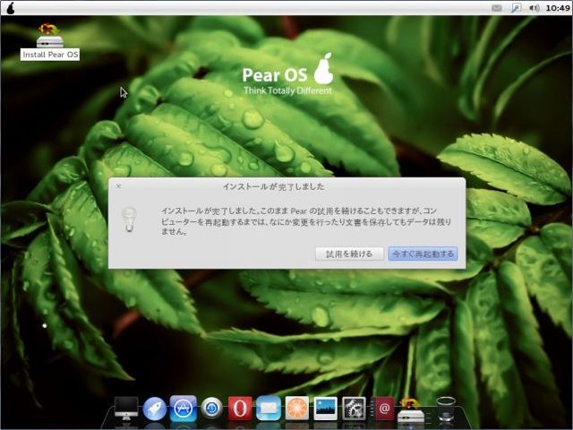 しばらくすると、Pear OS ライブ版が起動しますので、デスクトップの左上にある「Install Pear OS」アイコンをダブルクリックします。