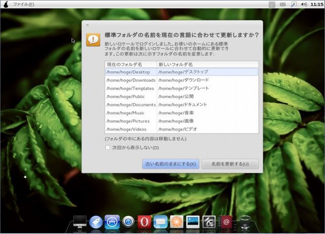 「標準フォルダの名前を現在の言語に合わせて更新しますか?」ときかれます。筆者は端末での使い勝手を考慮すると英語のままの方が良いので「古い名前のままにする(K)」ボタンをクリックして変更をしないようにしました。