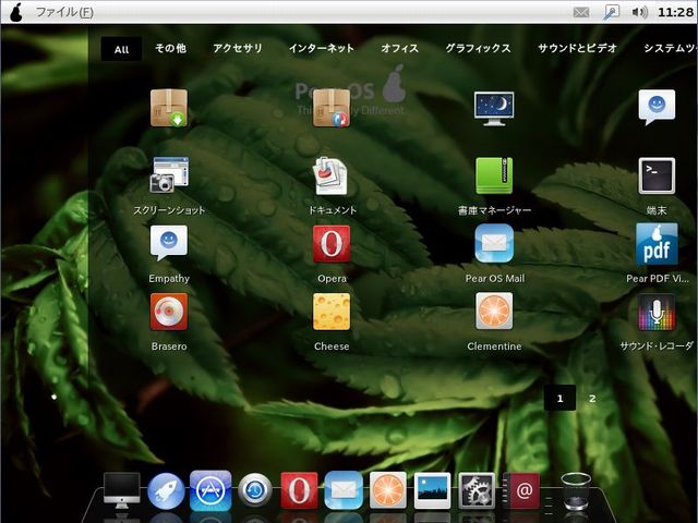 Pear OS はUbuntu のユーザーインターフェースをMac OS X風にしたLinuxディストリビューションです。デスクトップの下部にはアプリケーションをワンクリックで起動するためのアイコンバーである「Dock」はもちろん、「Finder」や「Pear OS AppStore」など、アプリケーション名もMac OSに類似させた名前になっています。また、動作も比較的軽快でUbuntuが標準で搭載する「Unity」になじめないユーザーには選択肢の一つになると思います。