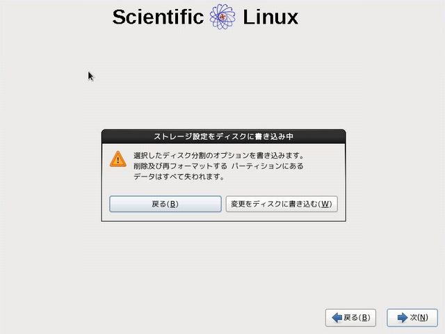 インストール先のディスクに論理パーティションを設定します。未使用HDDの前領域をScientific Linux 6.0に使用する場合は、「すべての領域を使用する」を選択します。使用済のHDDにこのオプションを適用すると、すべてのデータおよびパーティションが削除されるため、注意が必要です。