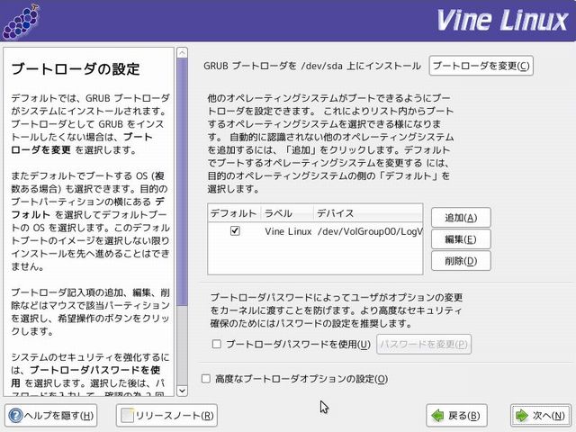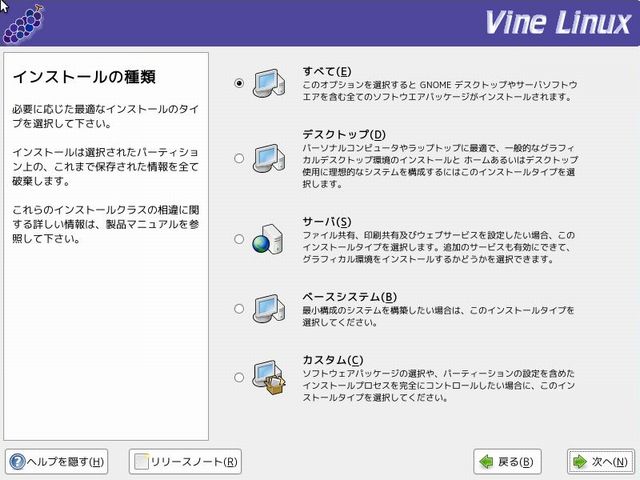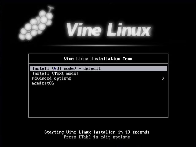 Vine Linuxインストールメニュー
