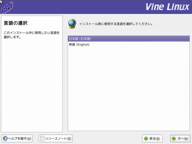 Vine Linux 5.2のインストール