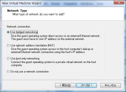 仮想マシンのネットワーク接続タイプを選択します。ゲストOSに固有のIPアドレスを持たせますので「Use bridged networking」を選択します。