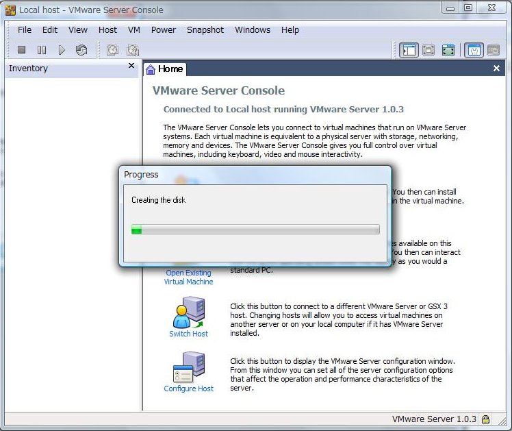 VMware Server Console画面が表示されので、ここで「New Vertual Machine」アイコンをクリックします。
