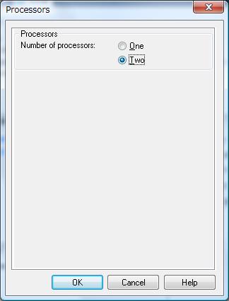 Processorの数の指定をします。デフォルトでは「Number of processor」が「One」ですが、Core 2 Duoですので「Two」にチェックを入れます。