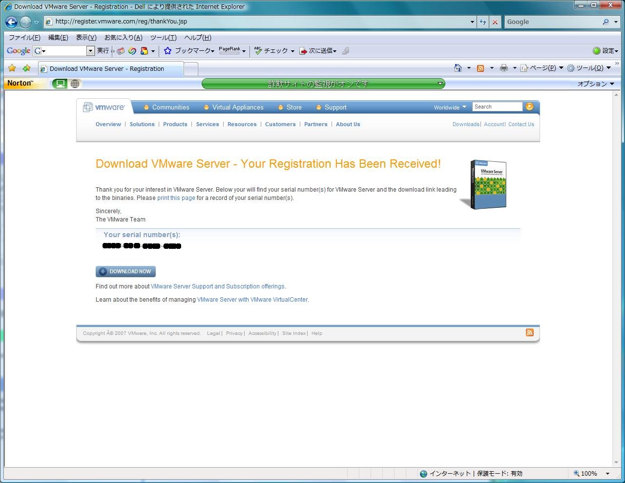 Windows Vista UlimateをホストOSとするのでWindows版「VMware Server for Windows Operating Systems.」のBinary(.exe)をダウンロードします。