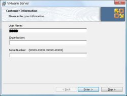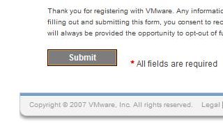 VMware Serverを入手するにはVMware ServerのダウンロードサイトからインストーラをダウンロードするとともにVMware Serverの登録サイトで必要事項を記入しシリアルナンバーを入手する必要があります。具体的にはメールアドレスや会社情報等の必要項目に記入、選択、チェックし一番下にある「Submit」ボタンをクリックします。