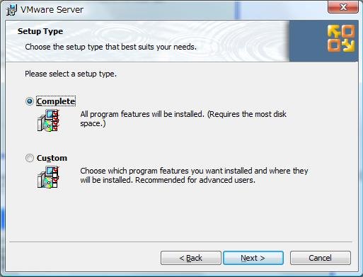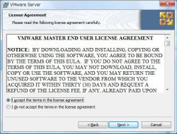 ダウンロードしたファイルVMware-server-installer-1.0.3-44356.exeをダブルクリックするとVMware serverのインストールウィザードが起動する。